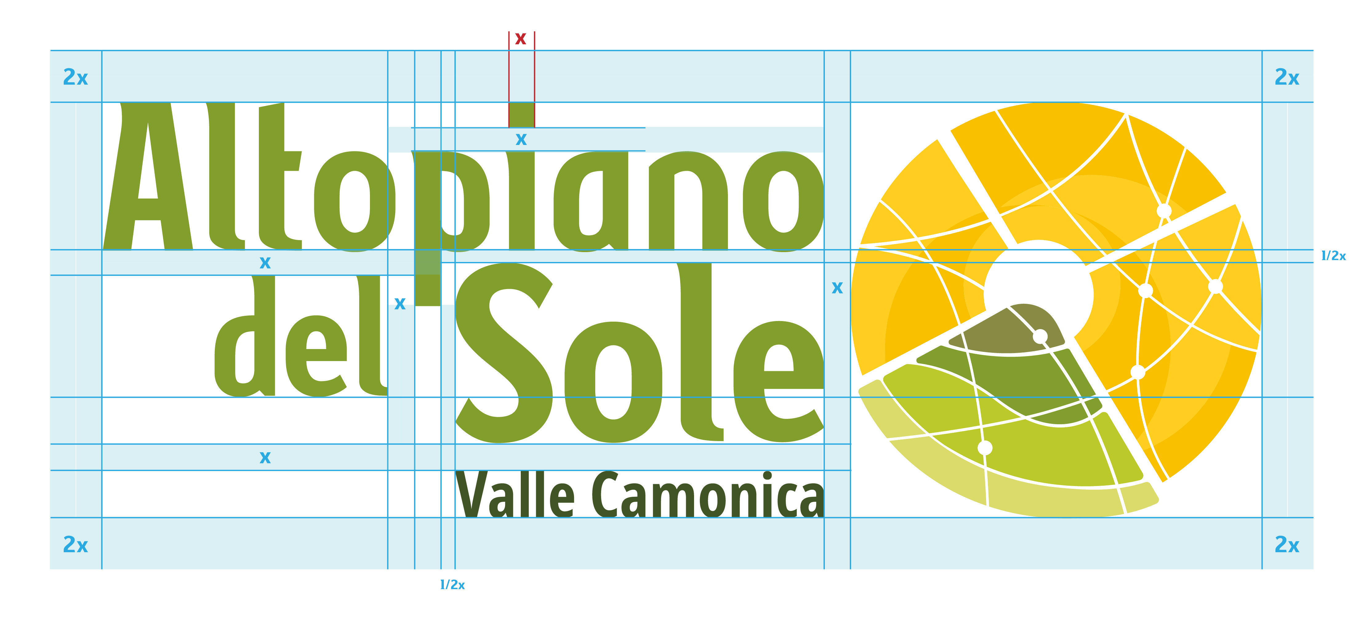 Il sole è l’elemento simbolico predominante, il monte (chiaro richiamo al Monte Altissimo) e la suddivisione in spicchi rafforzano il concetto di stagionalità e attaccamento al territorio; ogni puntino rappresenta invece un comune e la sua posizione sul territorio.
